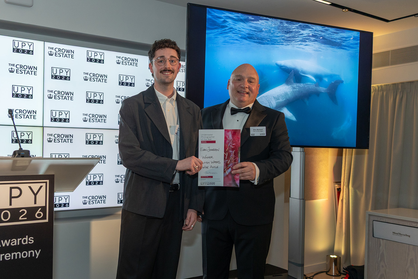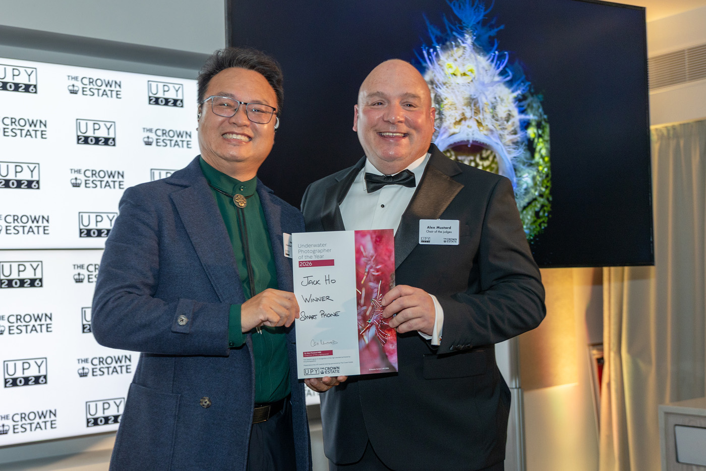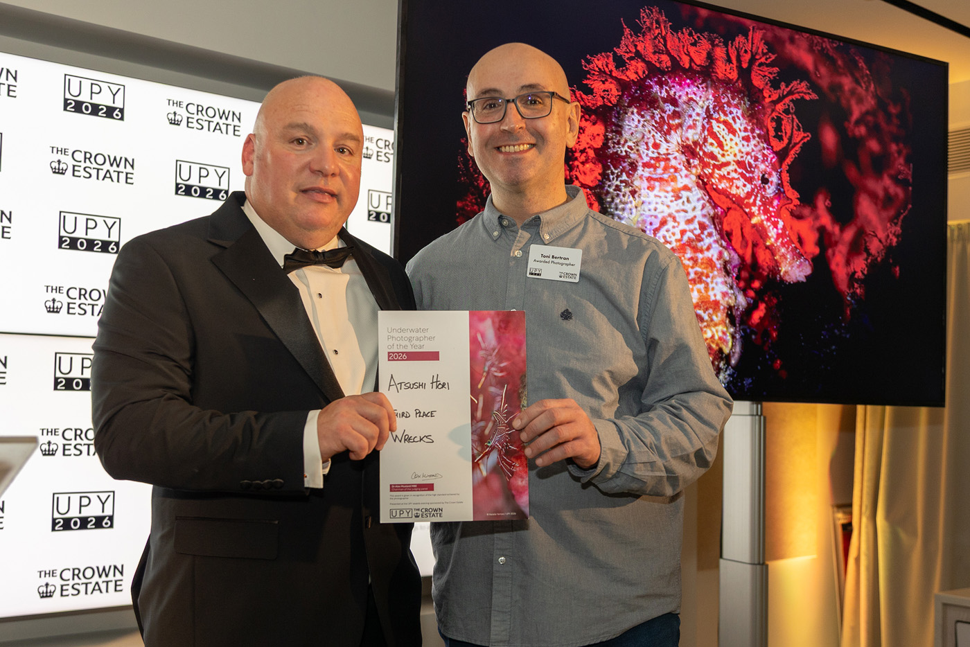 The 2026 Underwater Photographer of the Year awards were announced at a special awards evening in central London. Alex Mustard, chair of the UPY jury, presented the awards on stage with winners traveling to London from as far away as China, Japan and the USA.